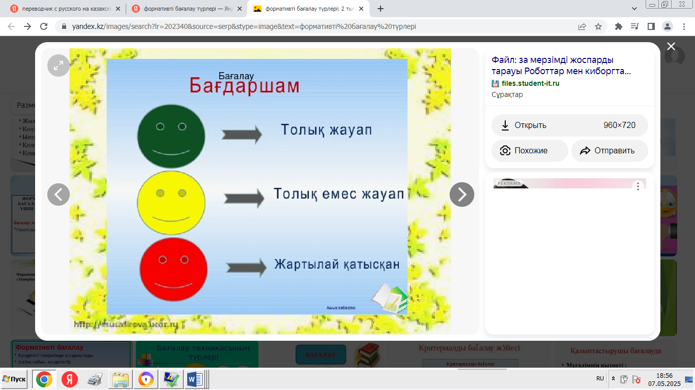 «Бағдаршам» формативті бағалау