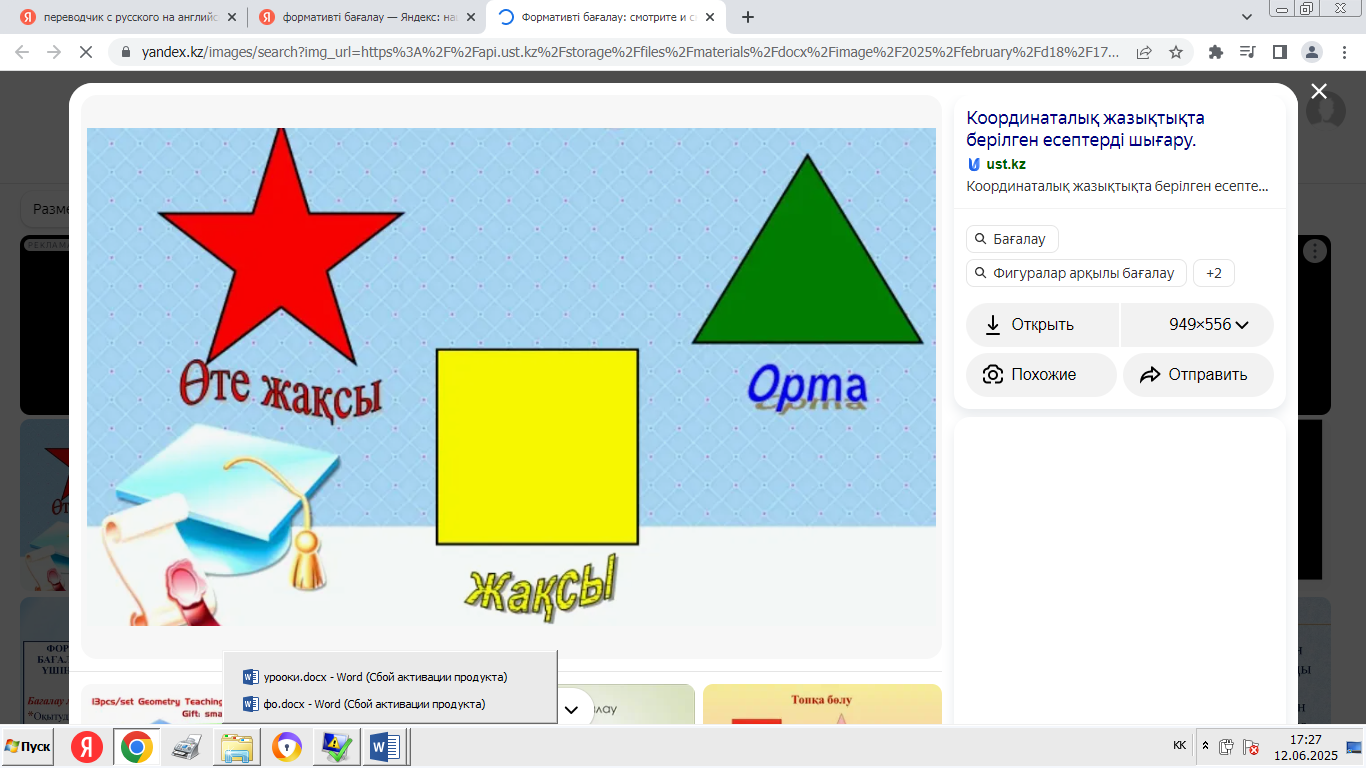 фигуралар» формативті бағалау -викторинаға қатысуды