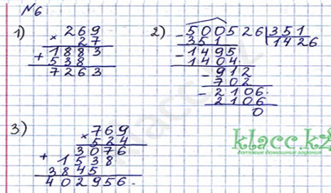 ЕҚБ №6 есеп 269*27=7263 500526/351=1426 769*524=402956
