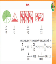 4.5.2.1 жай бөлшектердің құрылуын, салыстыру, қосу және азайтуды бейнелеу үшін жазық фигуралардың бөлігі және сан сәулесін қолдану 4.5.2.3 пайызды % символымен белгілеу 4.4.3.1** жай бөлшектермен өрнектелген сандар тізбектерінің заңдылықтарын анықтау 4.1.1.5 пайыз бүтіннің жүзден бір бөлігі екенін түсіну; бүтіннің бөліктерін пайызбен жазу |