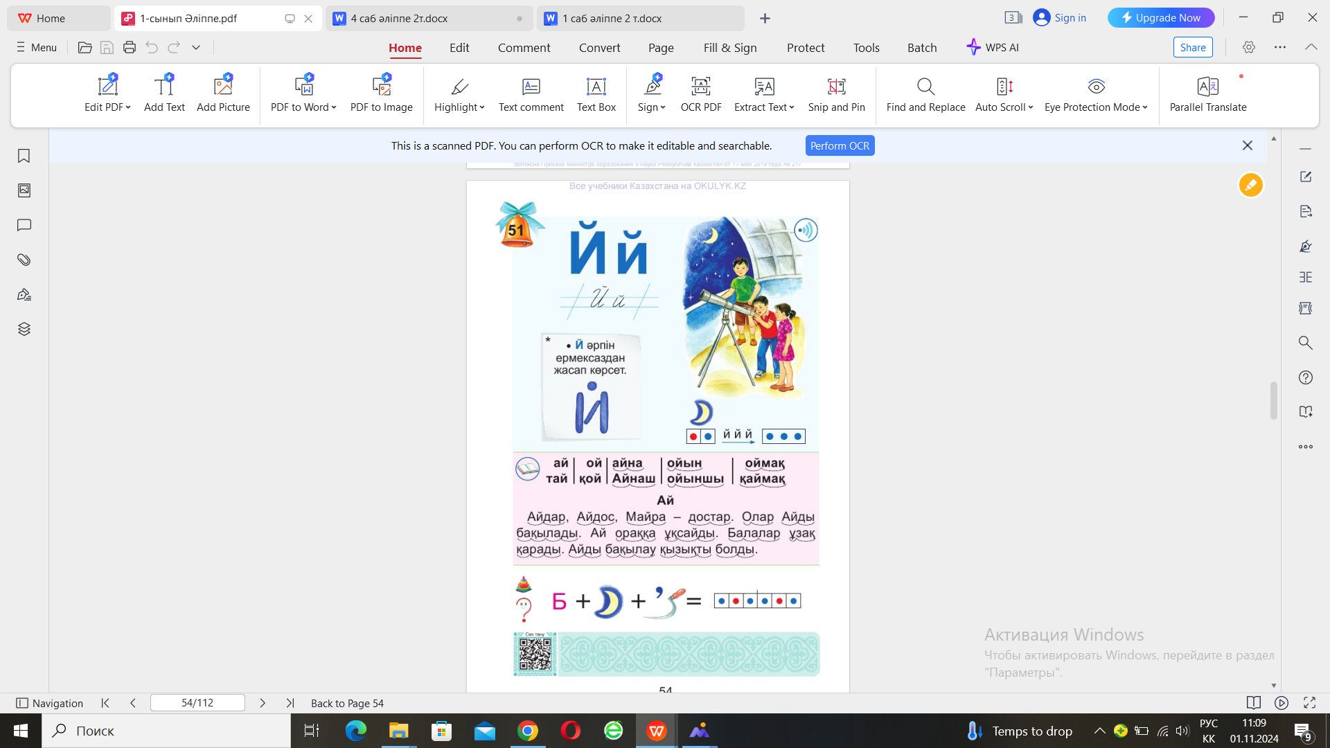 «Әліппе» оқулығы 1 сынып 2021ж Сюжетті сурет 54-бет №2 жазу дәптері Үнтаспа, смартфон