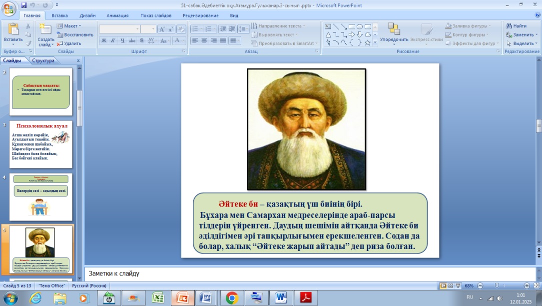 Оқу тапсырмасы. Әйтеке бидің шешендік сөзін оқып, жатқа айту.