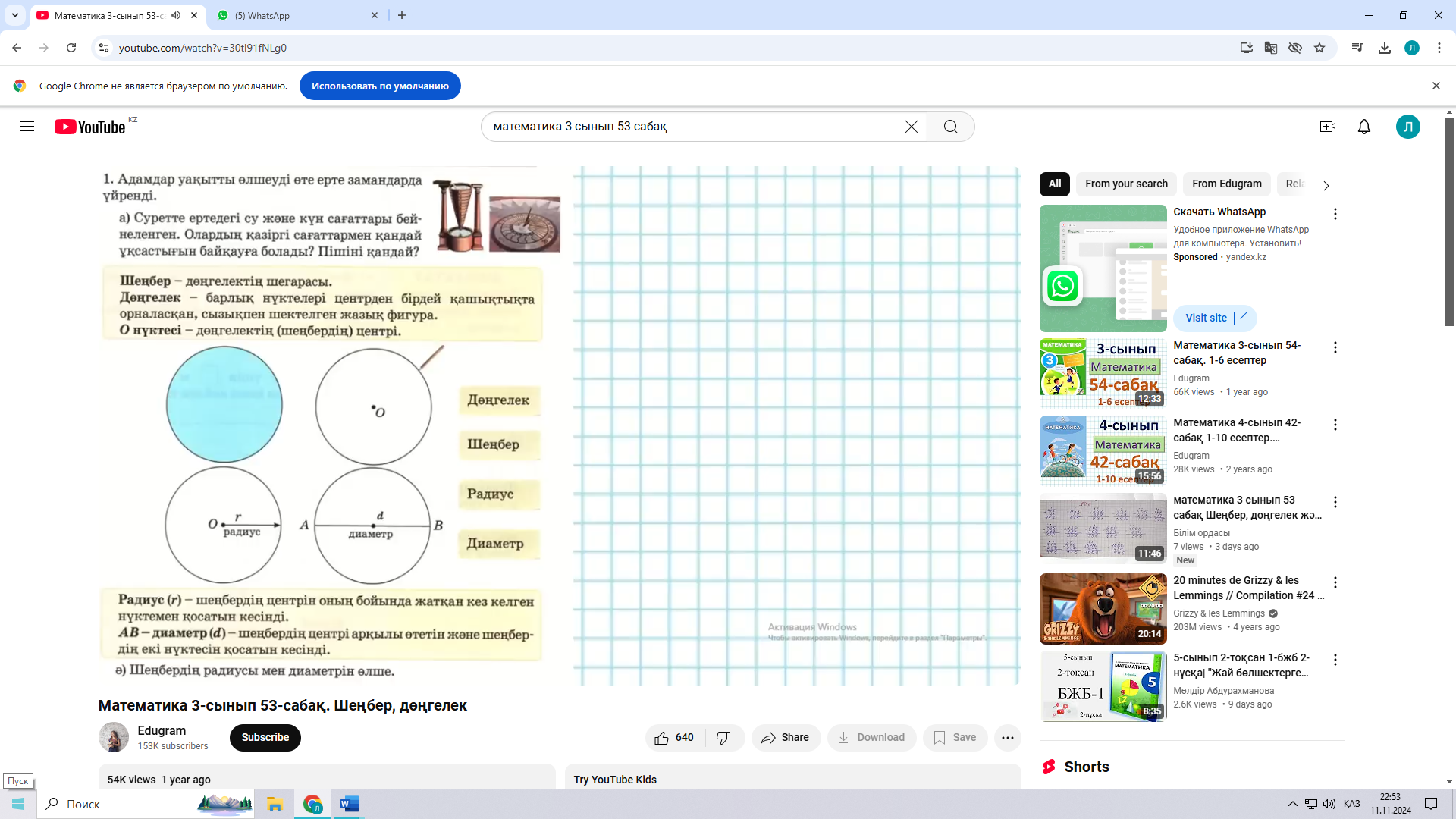 Сынып жұмысы 53 сабақ. Шеңбер, дөңгелек және олардың элементтері