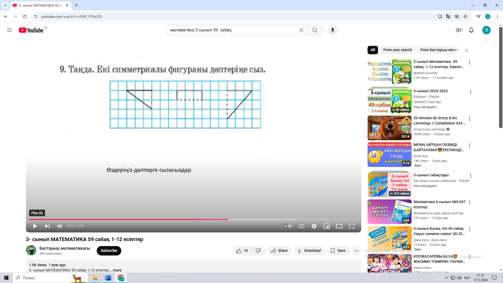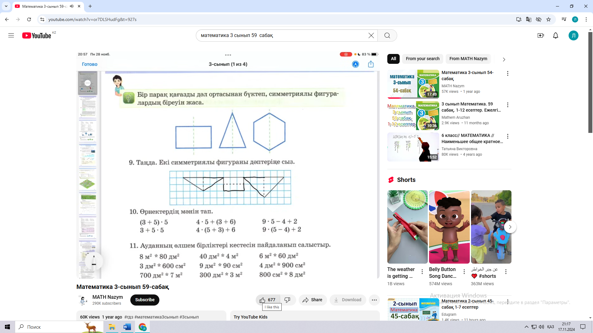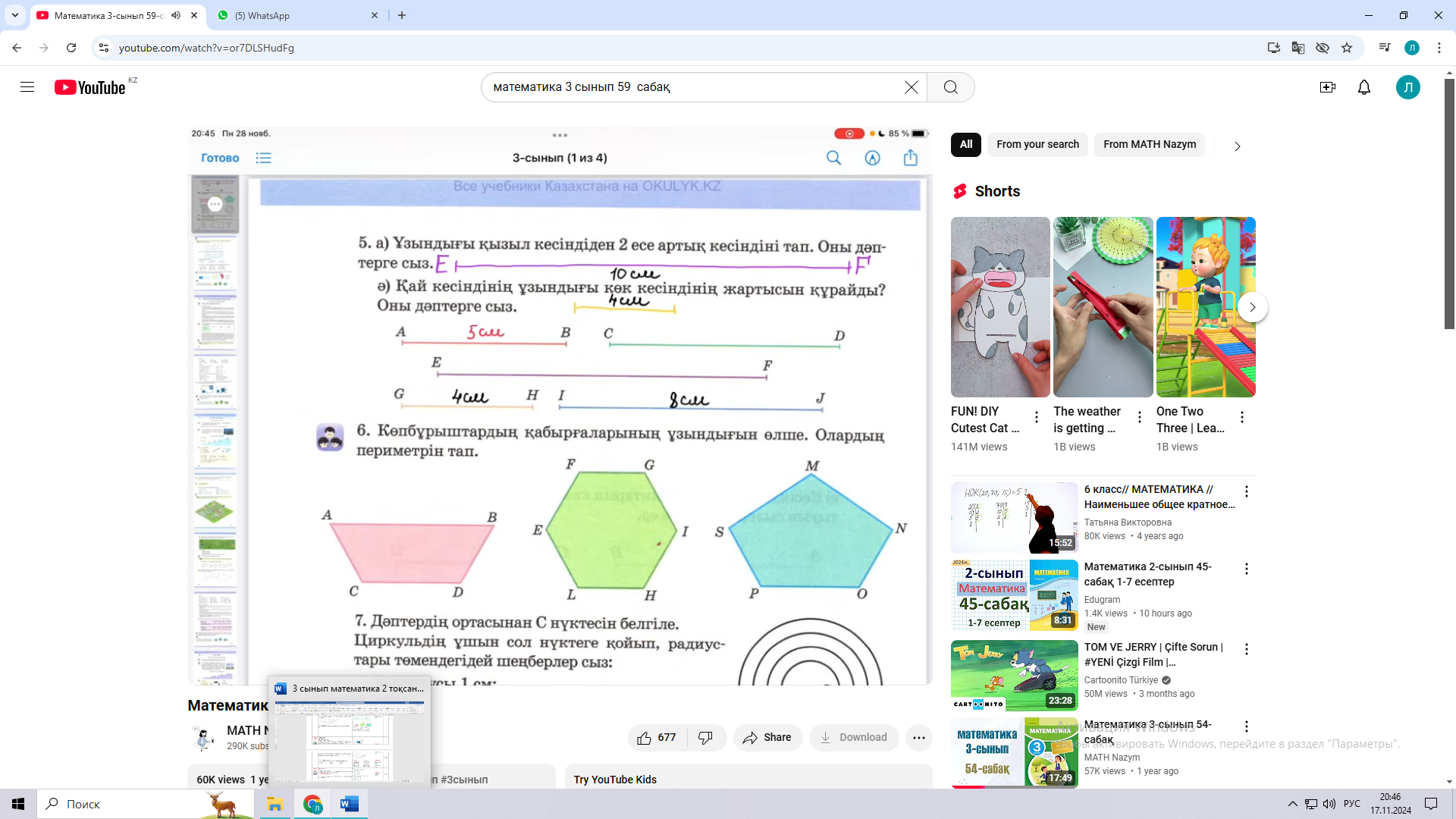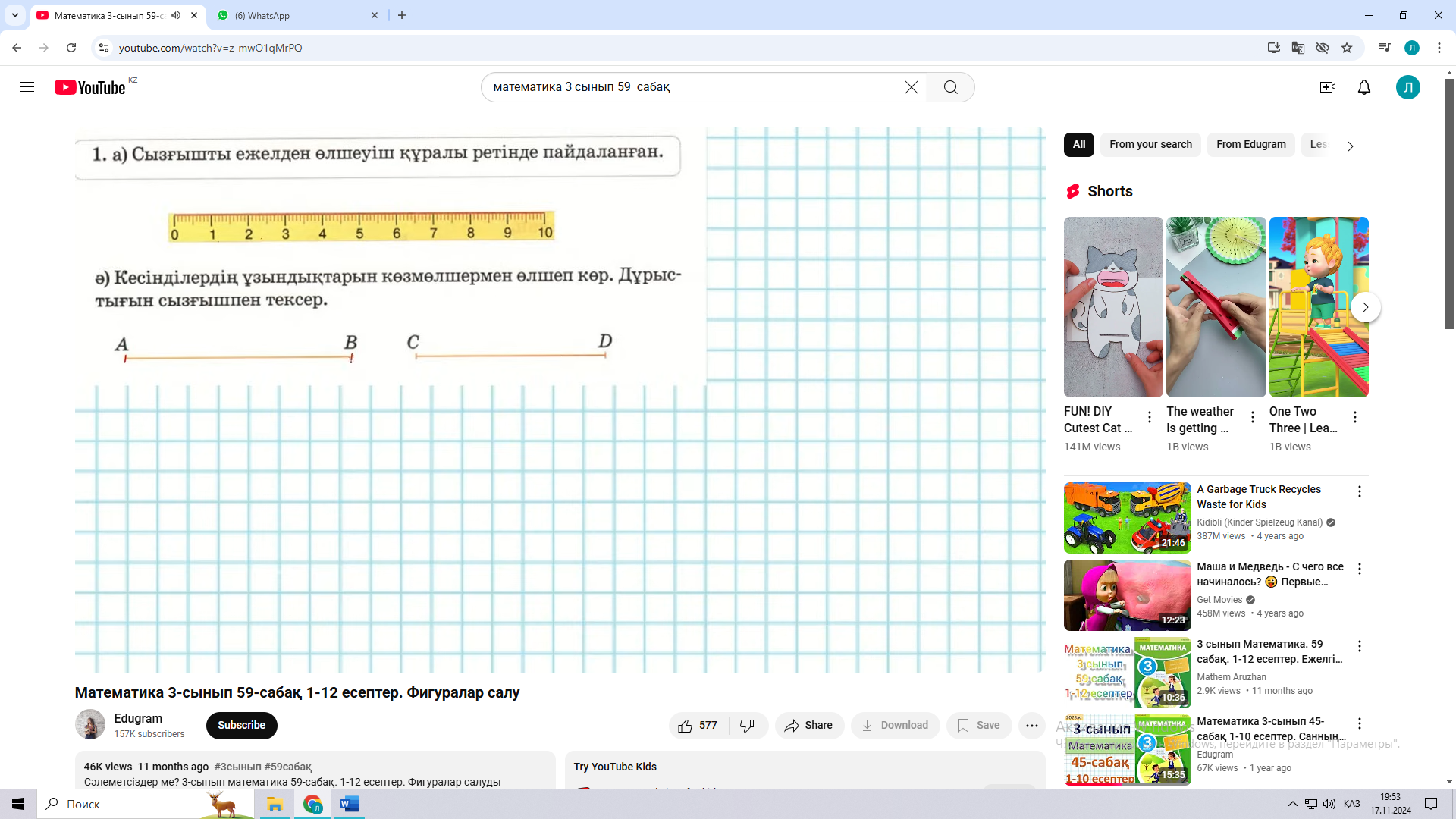 59 сабақ. Фигуралар салу ( Математика 2 бөлім 43 - 45 бет Алматыкітап баспасы, 2018 ж.) |