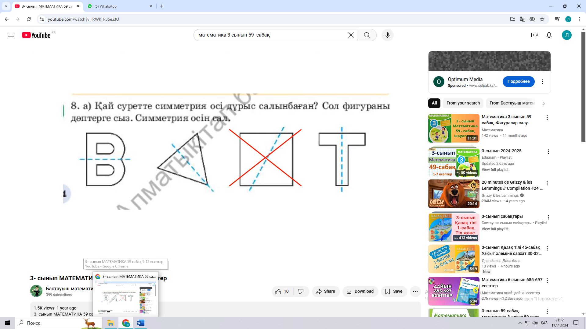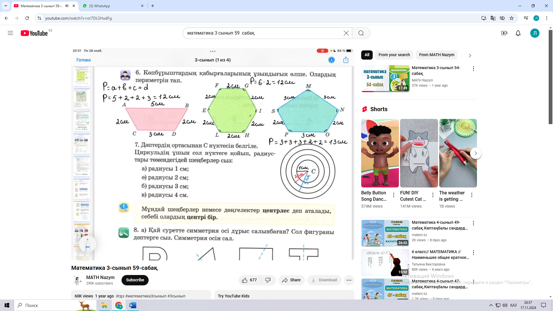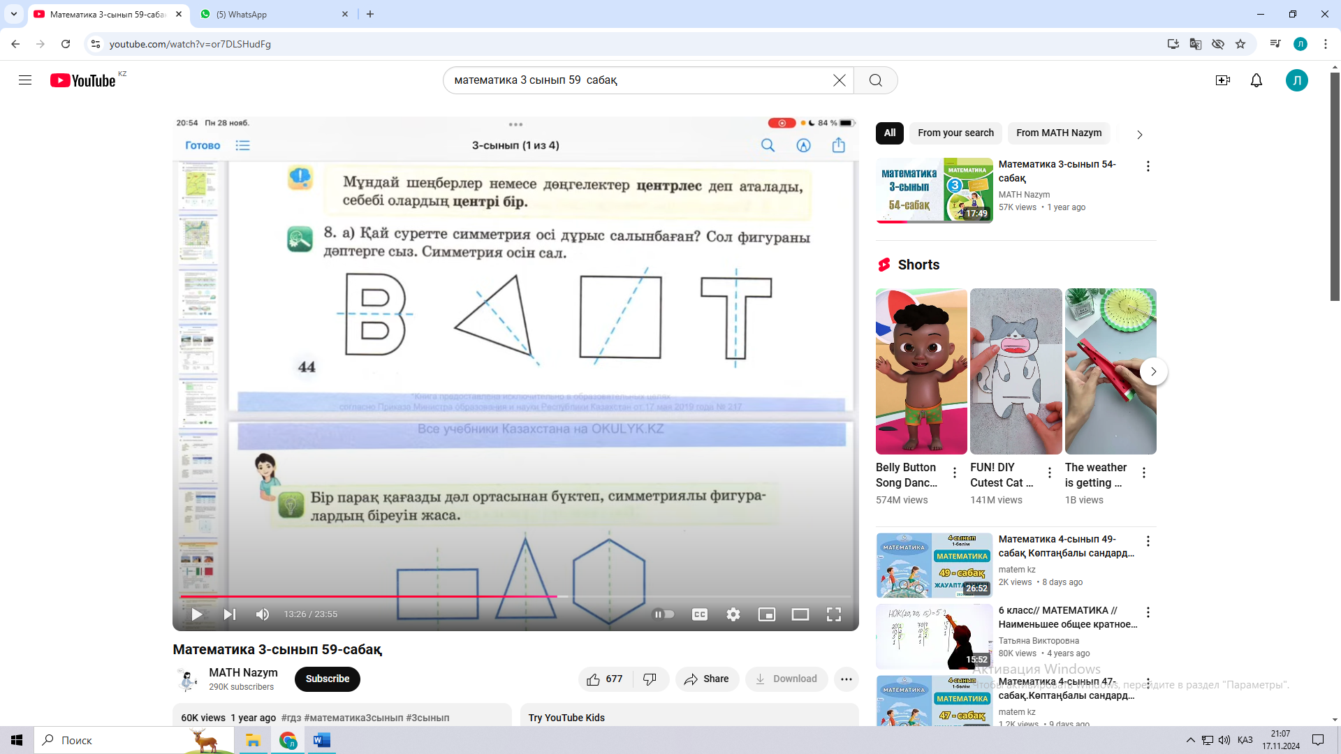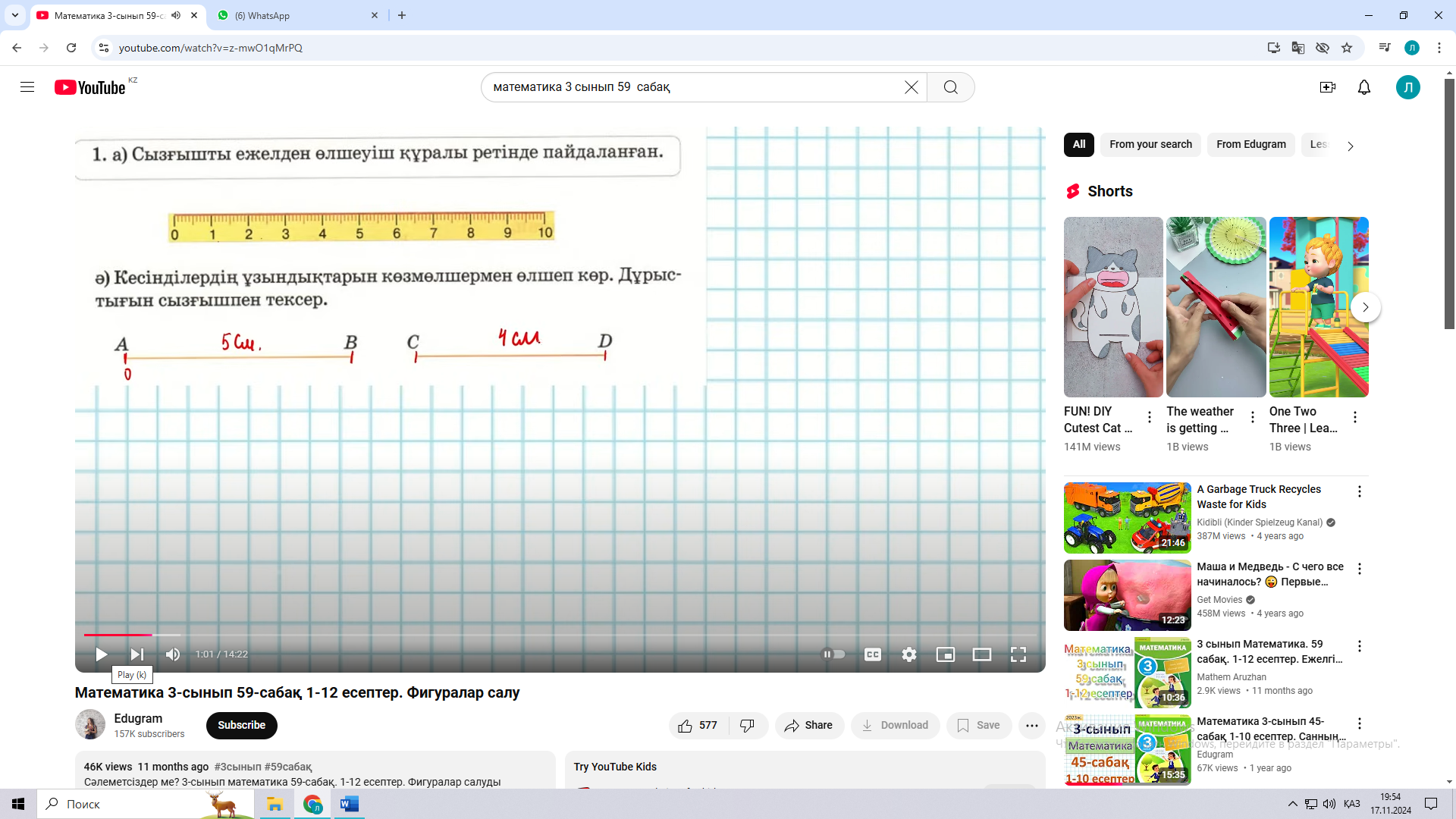59 сабақ. Фигуралар салу ( Математика 2 бөлім 43 - 45 бет Алматыкітап баспасы, 2018 ж.) |