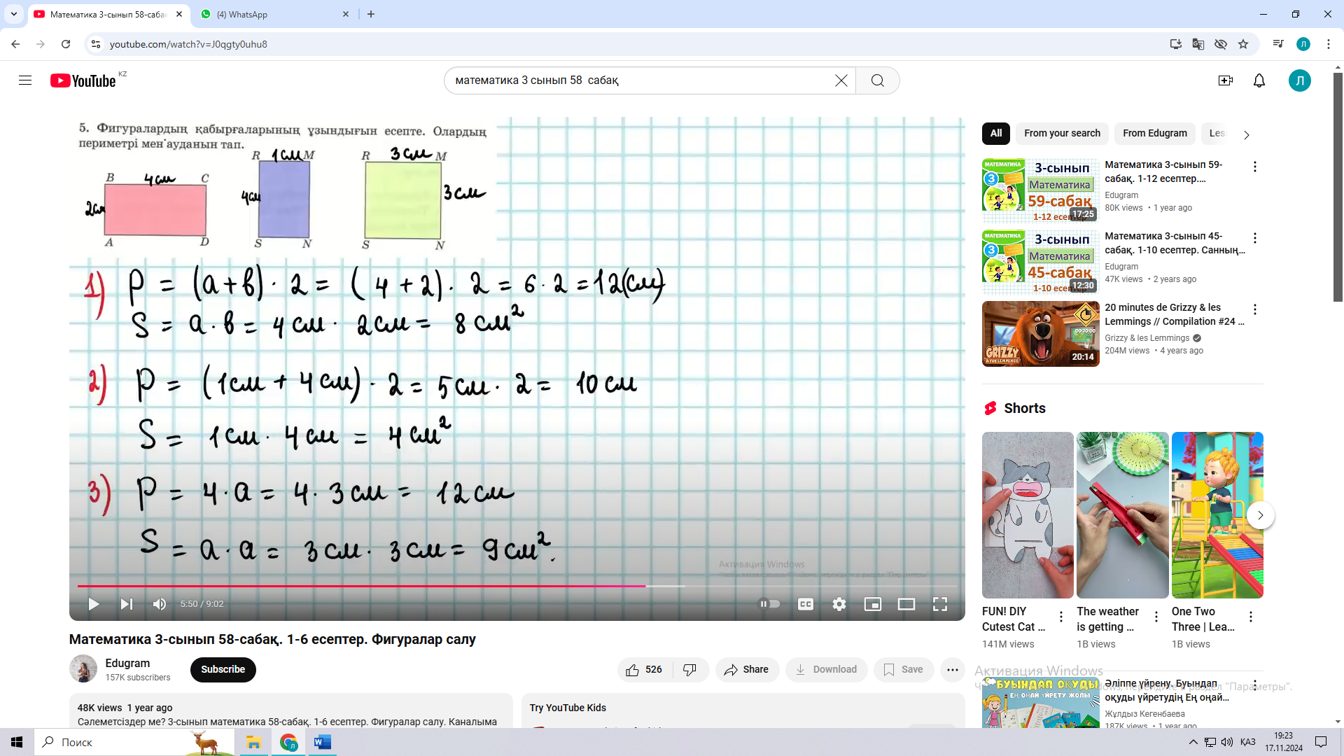 Сабақты бекіту Зертте Жызылым; 45 бет 12 есеп Бір торкөздің ауданы