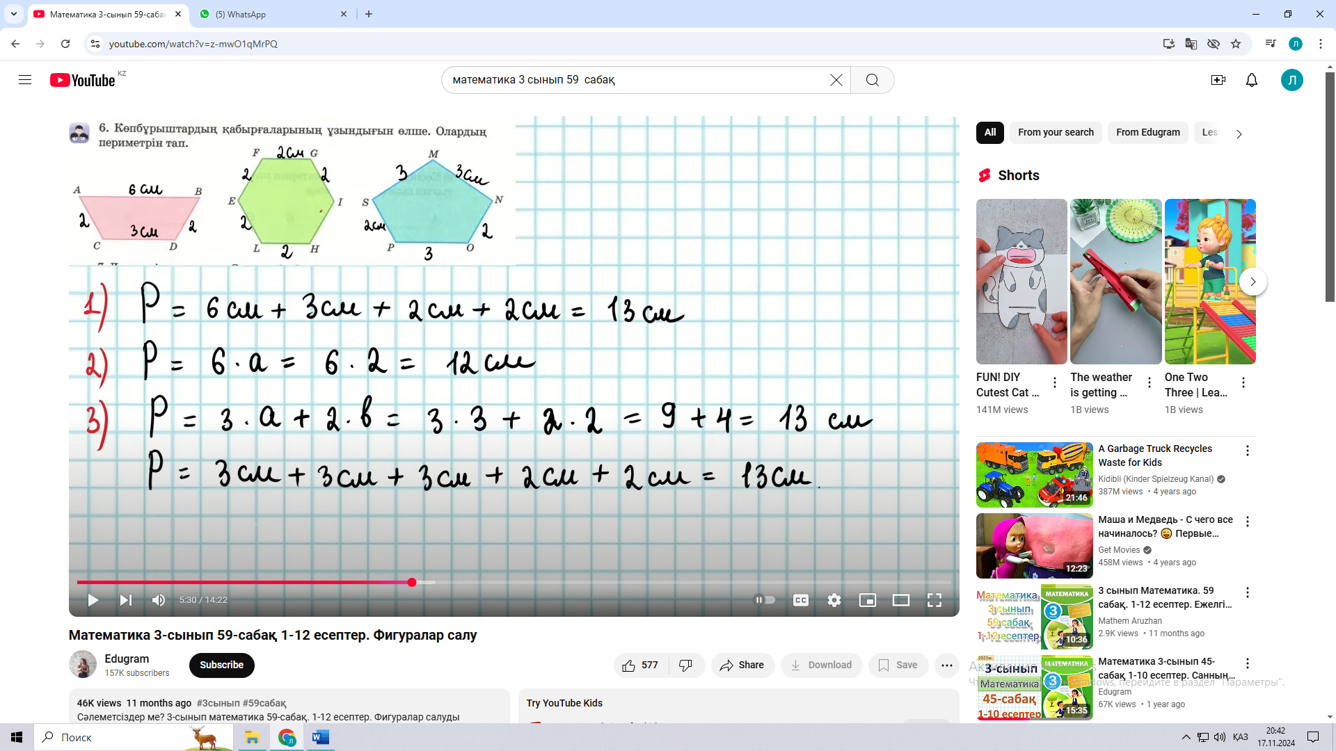 58 сабақ. Фигуралар салу «Білімін қорытады» әдісі Жазылым: 42 бет 5 есеп