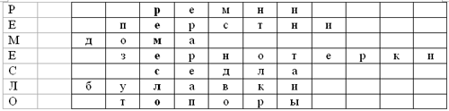 Написать слово «ремесло», ответы учащихся вписывать по буквам.