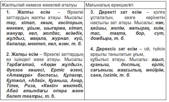 5. 1. 5. 1 тыңдалған мәтін мазмұны негізінде сұрақтарға жауап беру, көтерілген мәселе бойынша өз ойын білдіру; 5. 4. 2. 2 зат есімдердің мағыналық түрлерін мәнмәтін аясында жалғаулар арқылы түрлендіріп қолдану |