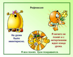 Учащиеся демонстрируют свое понимание сегодняшнего урока, выбрав смайлики |
