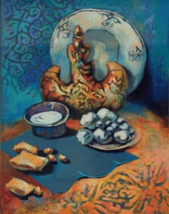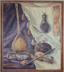 суретші аса тартымды композицияға қол жеткізеді. Натюрморттағы
