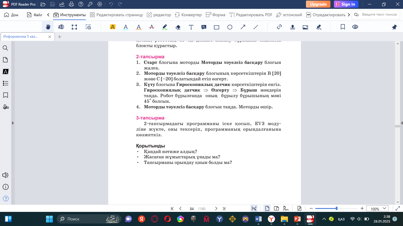 5.3.3.1 роботтың бұрыштық бейімділігін анықтау үшін бағдарламалар жасау; 5.3.4.4 гироскопиялық датчик жұмыс істеу принципін түсіндіру; |