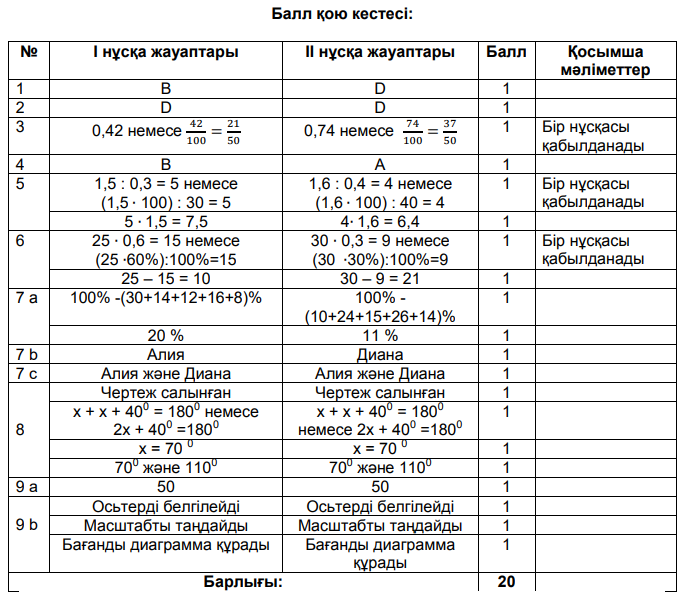9. Кестеде математика пәнінен емтихан тапсырған оқушылардың нәтижелері көрсетілген.