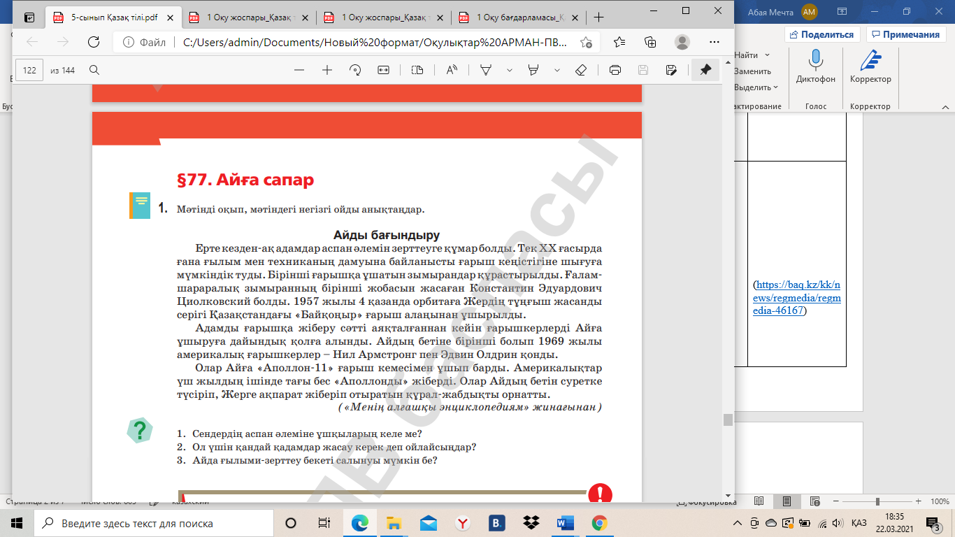 5-сынып "Айға сапар" тақырыбы