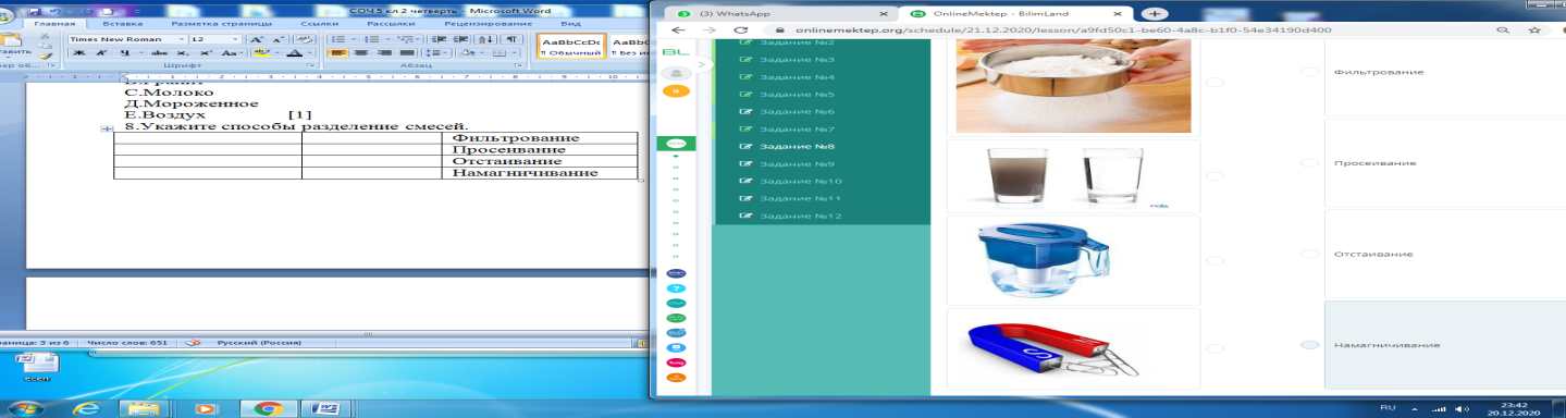 Тапсырма №4. (а) Қоспаға келтірілген мысалдар мен оны бөлу әдістерін сәйкестендіріңіз.