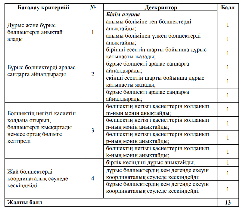5-сынып математика 1-тоқсан. "Жай бөлшектер" бөлімі бойынша жиынтық бағалау