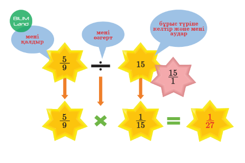 -Жай бөлшектерді бөлу алгоритмін біледі және бөлуді орындайды; -Аралас сандарды бөлу ережесін біледі,есеп шығаруда қолданады |