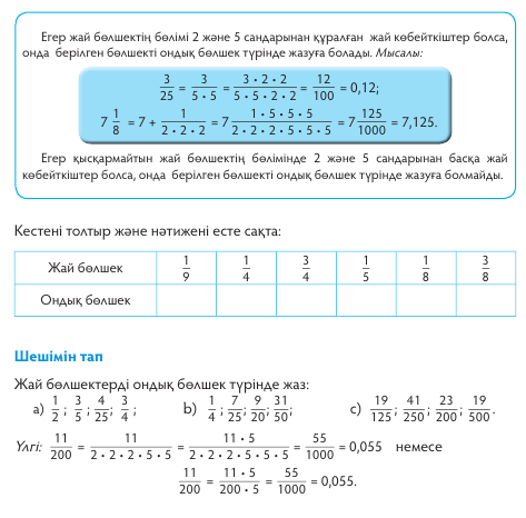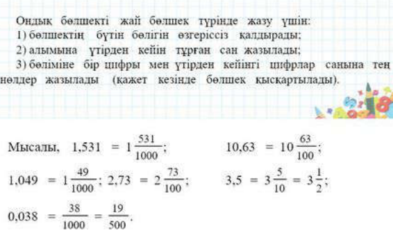 Ондық бөлшек дегеніміз не? Калай жазылады Ондық бөлшекті жай бөлшекке калай айналдырады?мысал |