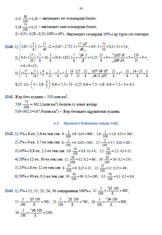 Берілген санның пайызын табады; Берілген пайызы бойынша санды табады; Пайызға байланысты мәтін есептерді шығарады. |