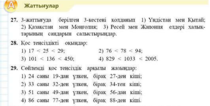 Натурал сандарды салыстыру. Қос теңсіздік |
