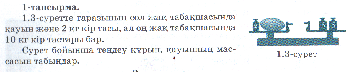 Бірлескен жұмыс (1,2,3 тапсырма) Тапсырманы ұсыну және дұрыс жауапты ұсыну арқылы үйрету Бекітуге арналғантапсырмаларды орындату; Тапсырмалардың жауаптарын жазу. |
