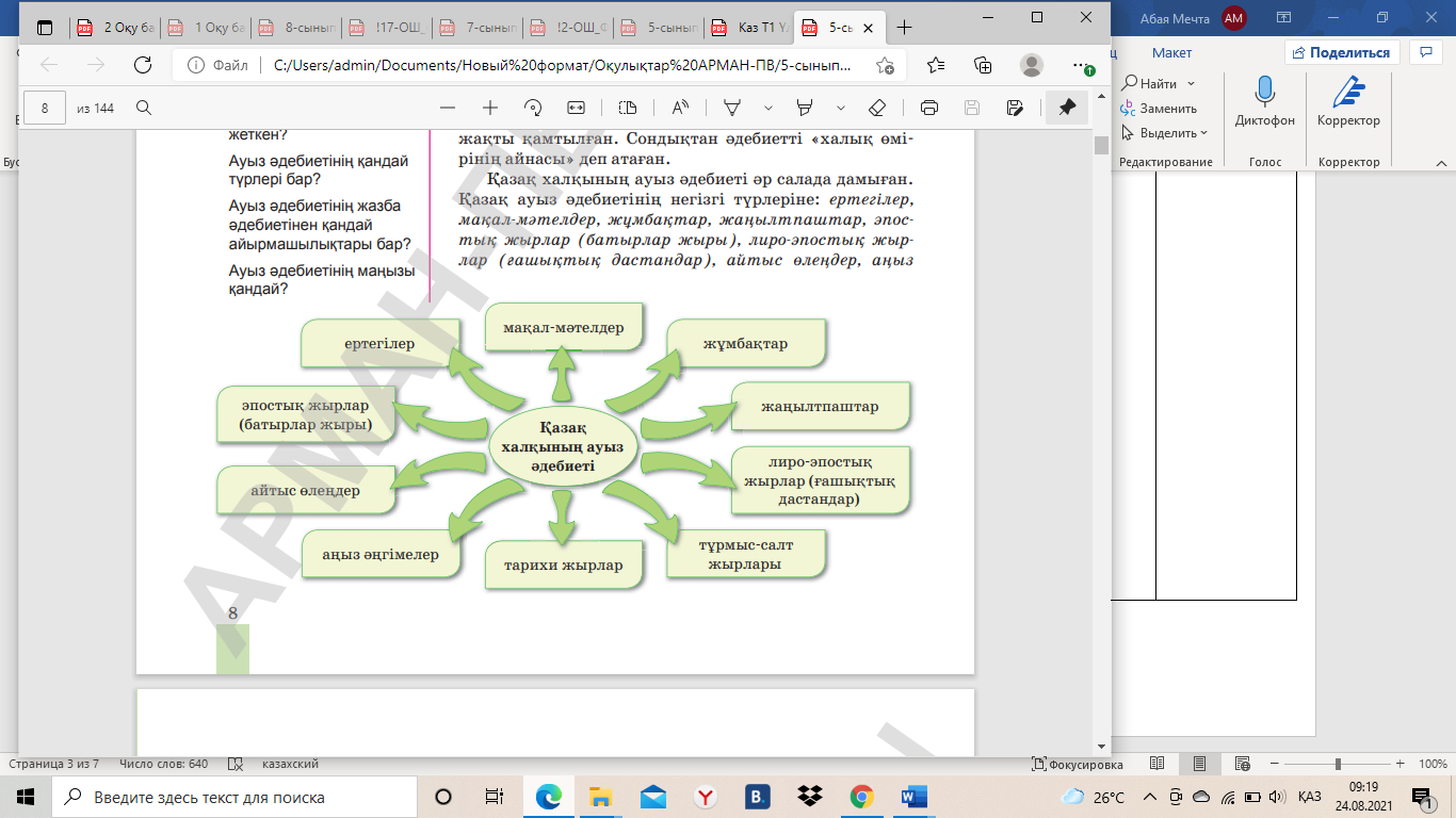 https://www.youtube.com/watch?v=H9dfAF7cR6Y 5-сынып Қазақ әдебиеті оқулығы Халық ауыз әдебиеті үлгілері. |