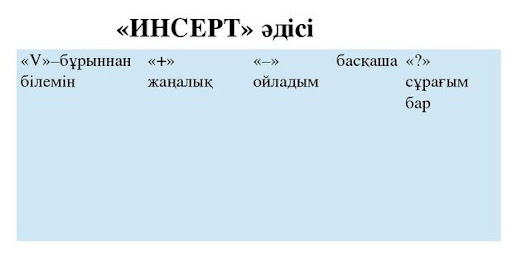 мәтіннен алған ақпаратты ИНСЕРТ кестесімен түртіп алады, ойларын