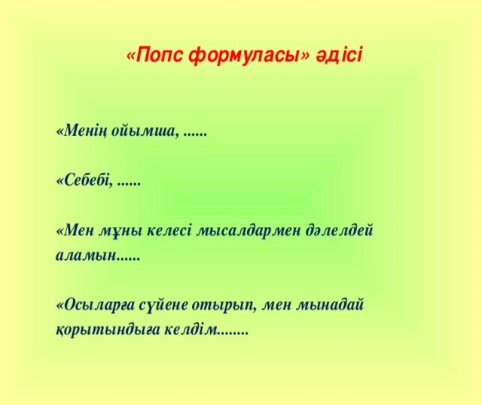«ПОПС формуласы» бойынша сабақты қорытындылау мақсатында оқушылар сабаққа деген көзқарасын, рефлексия жасайды
