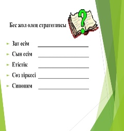 Дескриптор: Жалпы –3 балл. - Сұрақтарға өз ойын білдіре отырып жауап береді |