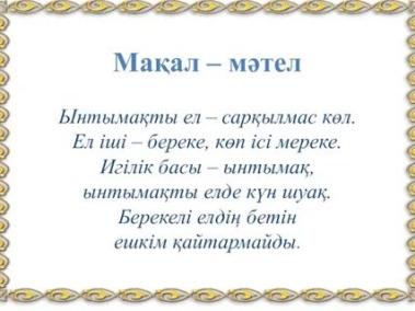 Қазақстандағы ұлттар достастығы (қайталау). Мәтінмен жұмыс |
