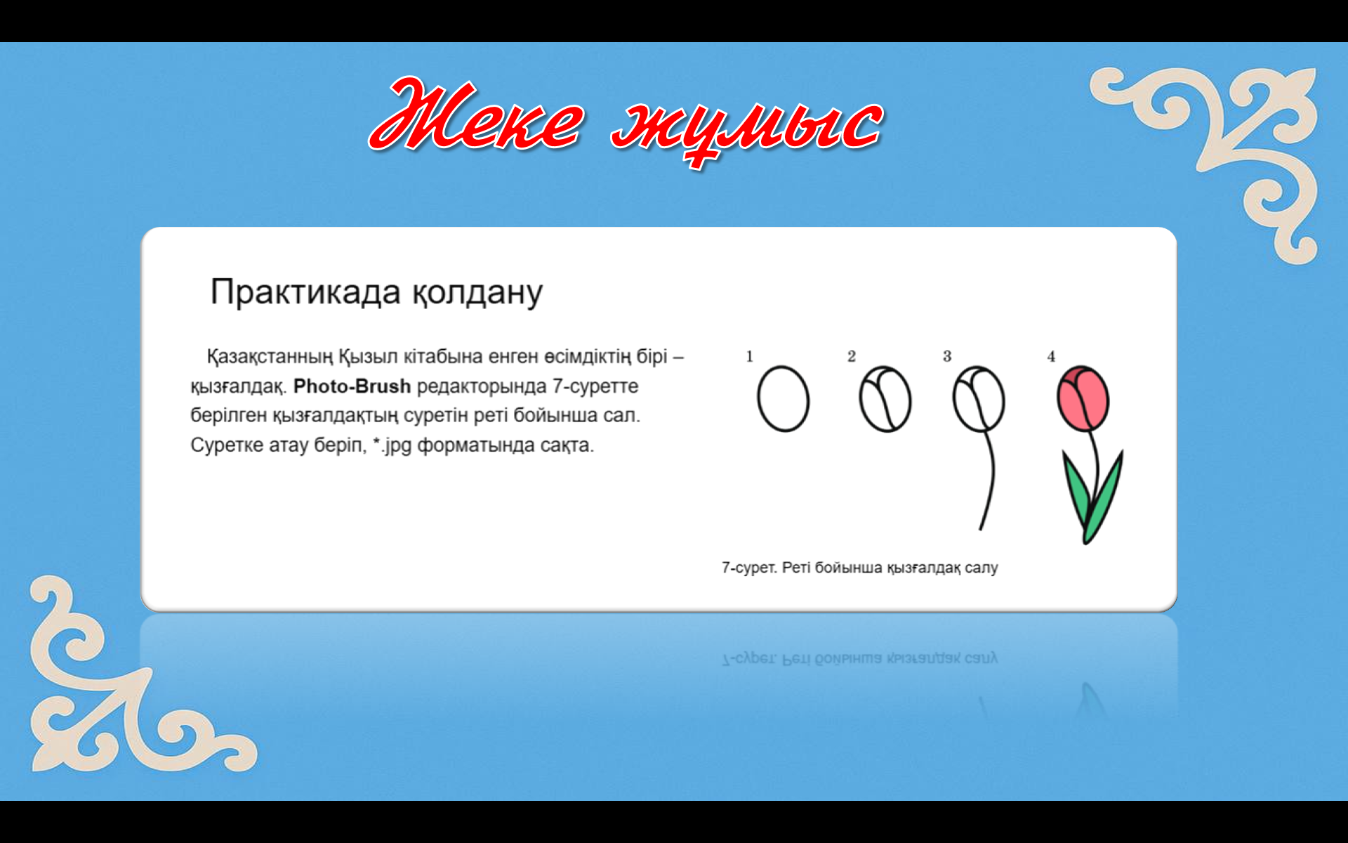 Жеке жұмыс. Компьюьтерде практикалық жұмыстар орындайды