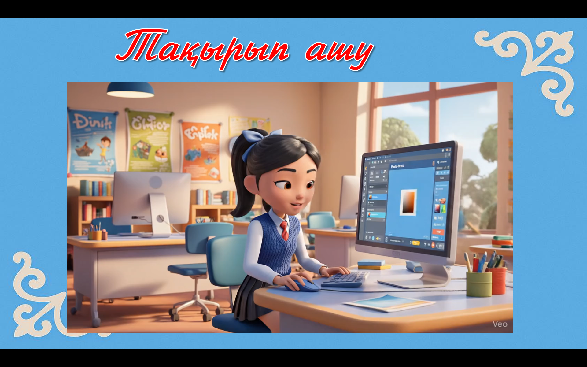 Тақырып ашу. Тақырып ашу мақсатында ЖИ бейнеролигі арқылы сұрақтар беру. Сабақ мақсатымен таныстыру.