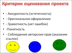 Оқушылар таңдаған тақырып бойынша жұпқа бөлінеді және жобаны көрсету түрін (формасын) таңдайды. Бұл жұмыстың нысаны тілдік дағдыларды студенттерден талап етеді. Мысалы, олар сыныптастарымен қандай тақырыпты таңдау және оны қай формада ұсыну керектігін талқылайды. Мұғалім: Д Біз жобаларды бағалауды қалай қарастырайық. Бұл әрекетті орындау үшін критерийлерді таңдаңыз. Сіздің жобаны бағалау критерийлерің қалай толықтырар едіңіз? |