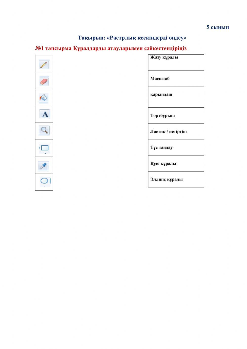 5-сыныпқа арналған "Графикалық редактор" бөлімі бойынша тапсырмалар жинағы