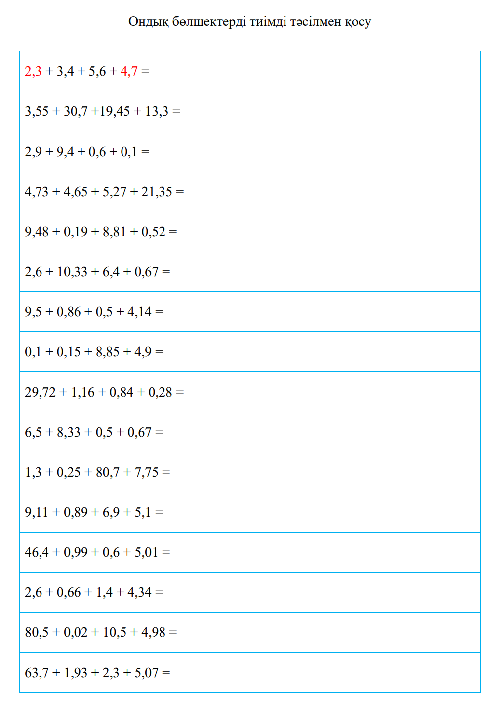 5 сыныпқа арналған қосымша кітапша МАТЕМАТИКА
