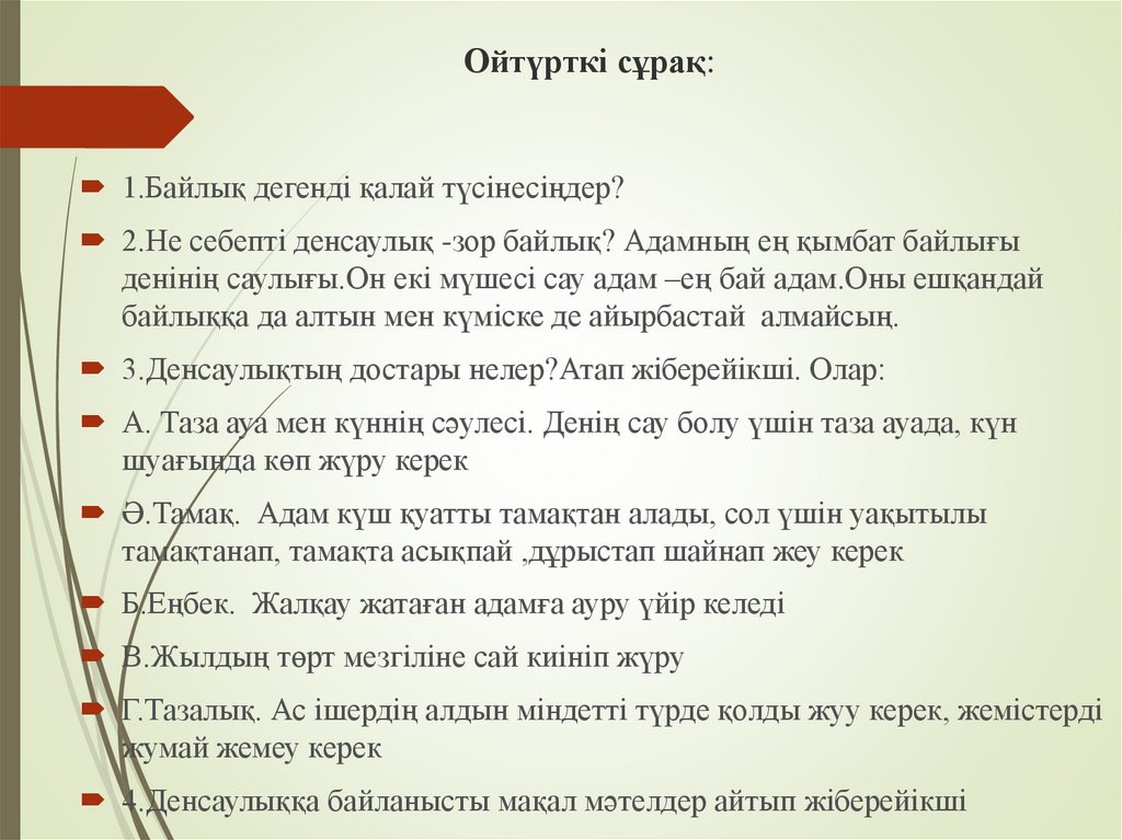 Бөлім: 7. Денсаулық- зор байлық |