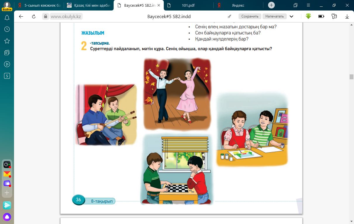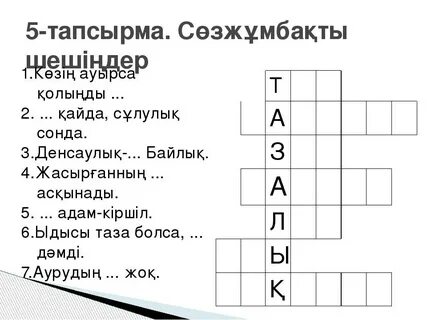 тапсырма Айтылым 1-тапсырма Жазылым Айтылым 4-тапсырма Айтылым Оқылым Айтылым 7-тапсырма 3-тапсырма Айтылым |