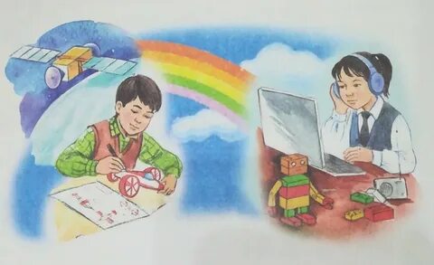 1.Сөздікпен жұмыс. Жаңа сөздермен таныстырады, оқушыларға қайталатады, жаңа тақырыпқа байланысты сөздіктермен жұмыс. Айтылым Ойтүрткі Айтылым Қосымша тапсырма Жеке жұмыс Оқылым 1-тапсырма Топтық жұмыс ЕББҚ:(Зейін тапшылығы және гипербелсенділік синдромы (ЗТГС) (даралап оқыту тәсілі арқылы) Тапсырма орындауда «Аяқталмаған сөйлем» әдісі қолданылады. Жеке қажеттілгі бар оқушыны (төмен деңгейлі)«қолдау» Сергіту сәті Оқылым Жазылым Айтылым 3-тапсырма Жұптық жұмыс Жазылым Айтылым 2- тапсырма Жеке жұмыс 4-тапсырма Тыңдалым Оқылым Айтылым Жеке жұмыс Өлеңдегі ақпарат бойынша сұрақ Қазіргі өмірмен байланысты жауап 1. Алыс жерлерден жылдам хабар алғызатын нелер? 2. Мың шақырым жерлерге күн жарымда жететін қандай арба? 3. Адам неге құстай ұшады? 4. Теңізде қалай жүзеді? Айтылым Жұптық жұмыс |