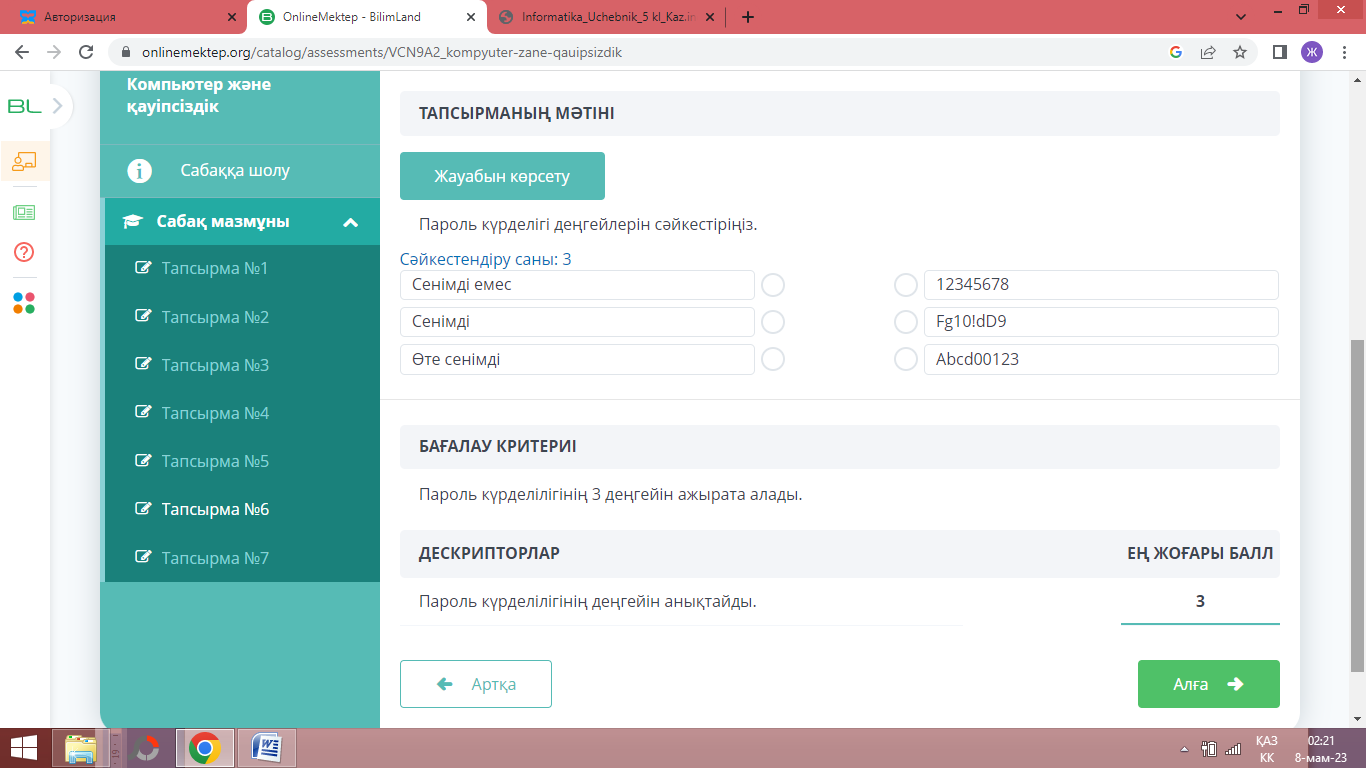 Пароль күрделігі деңгейлерін сәйкестендіріңіз (1)