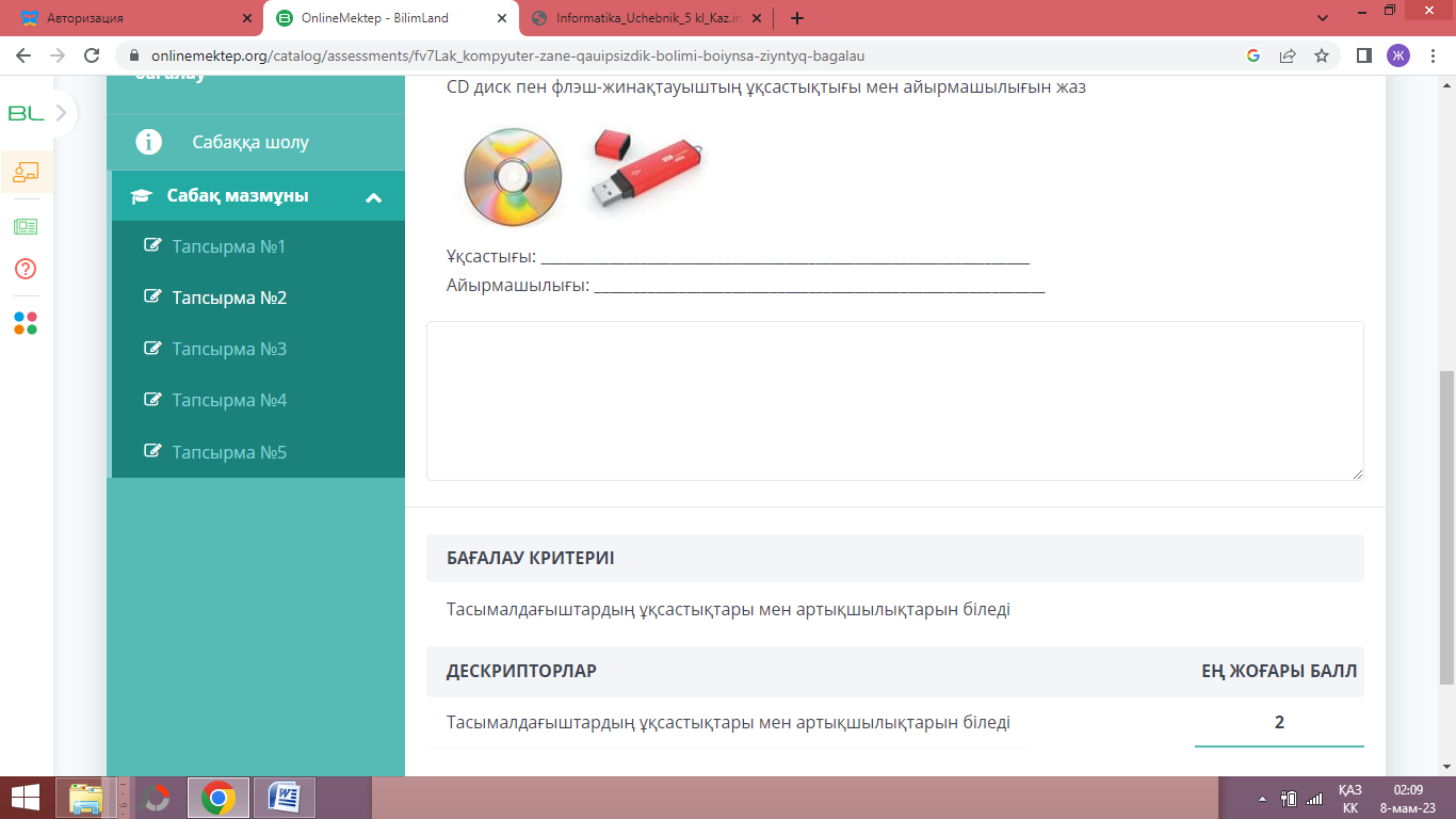 CD диск пен флэш-жинақтауыштың ұқсастығы мен айырмашылығын жаз (2)