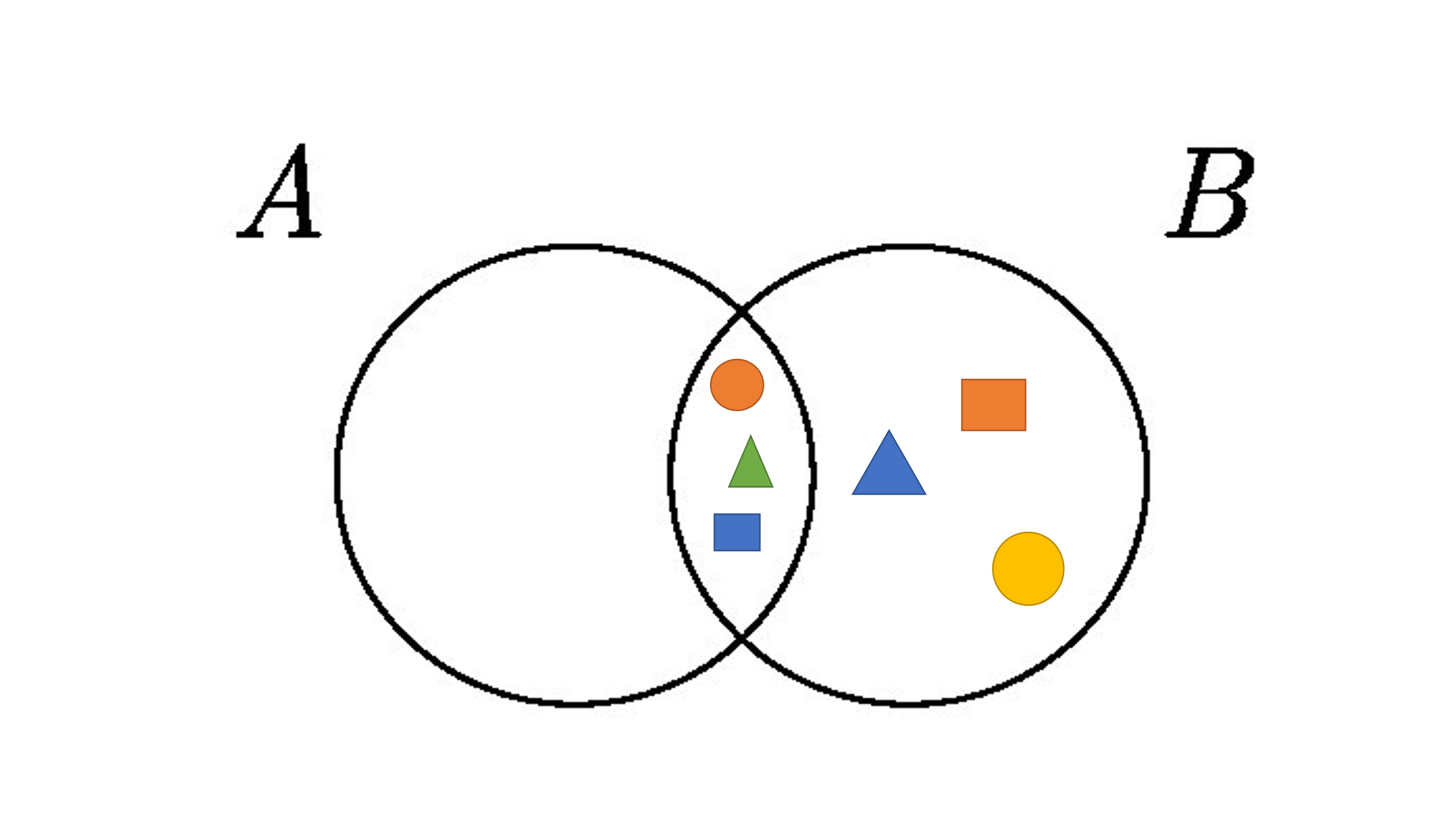 2-тапсырма Диаграммаларда бейнеленген жиындардың элементтерін зертте.Осы екі жиынның бірігу және қиылысу диаграммаларын құр. Бірігуі-9 элемент Қиылысуы