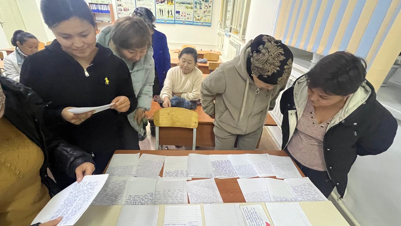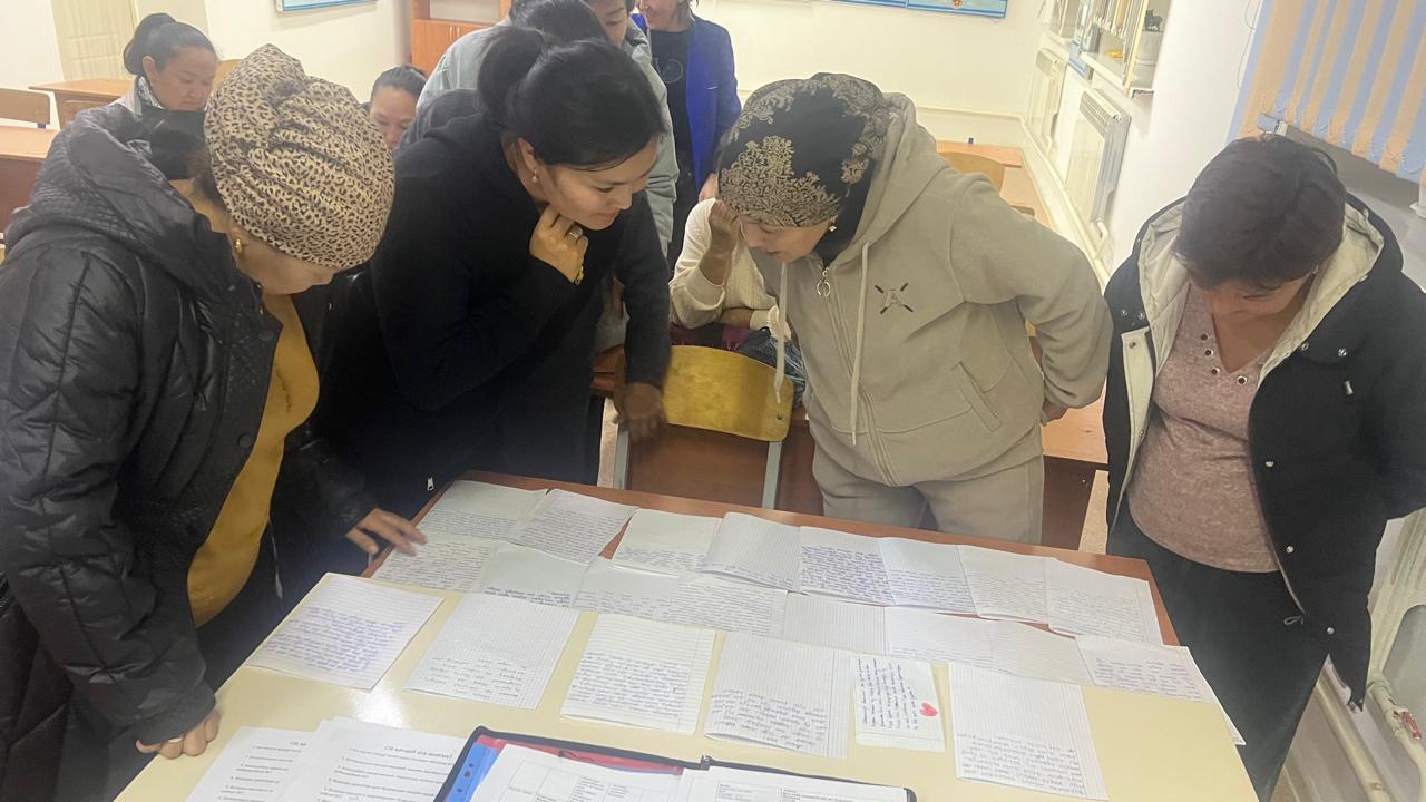 Сонымен қатар 2 рет ата –аналар жиналысы өткізіліп, ата-аналардан сауалнама алынды. мысалы «Анама хат»әдісін қолданып оқушылардың жазған хаттарын аналары оқып,өз баласының жазуын тануы арқылы,баласының сабағына қаншалықты көңіл бөлетіні туралы білдік.