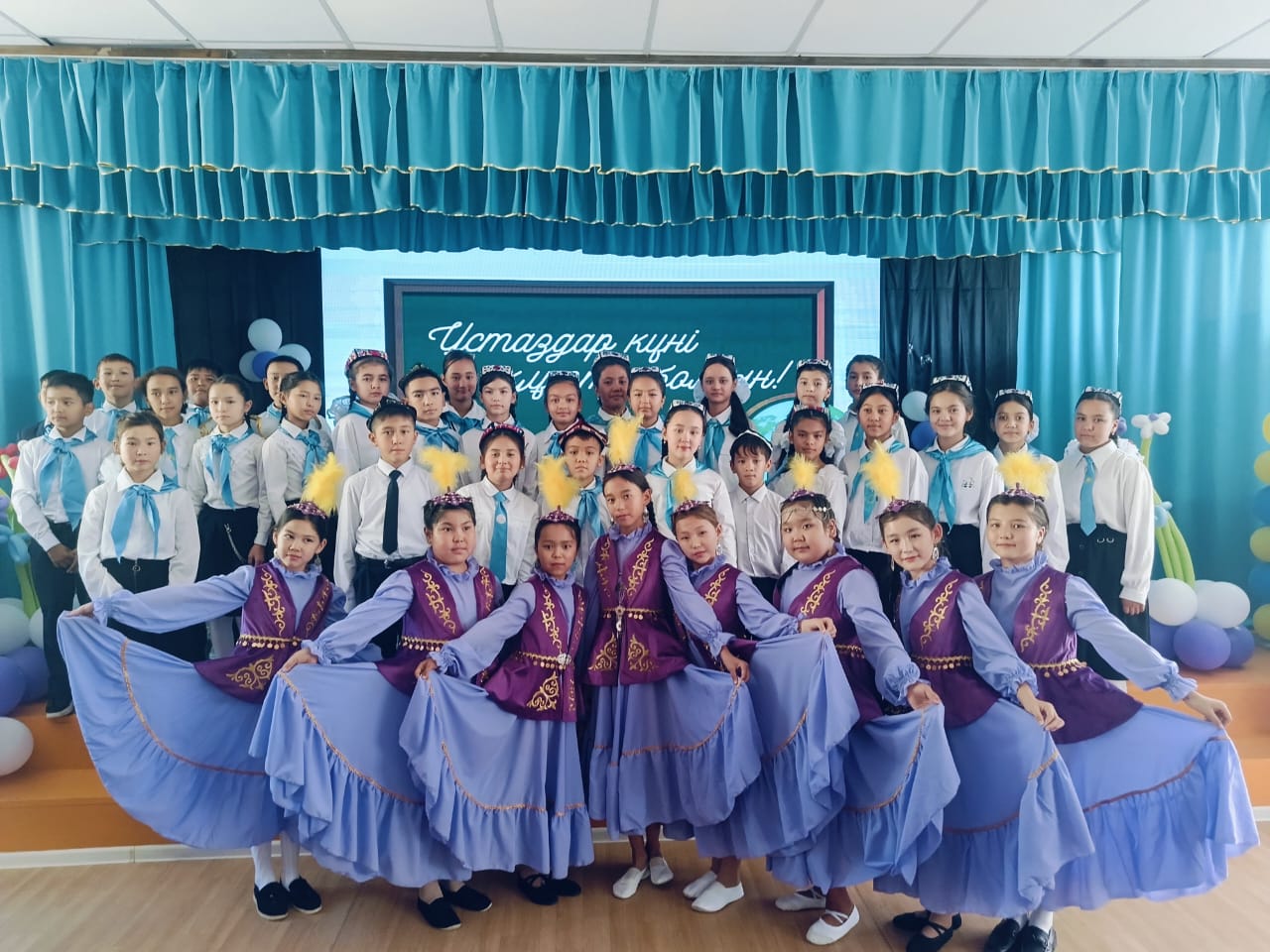 Ардагер ұстаздар:Бакиев Абдулхаким Аблизович, Ахтамова Адалат Нуриевна ,Рысбаев Ғалымжан Калиевич, Байрахметова Гулжахан,Нурғасыл апай, Белгибаева Бижамал, Изимова Гулбанум Равкатовна,Садырова Гулиям апайларымыз сияқты ардагер ұстаздарымыз келып қонақ болып концерттік номерлерімізді тамашалады.