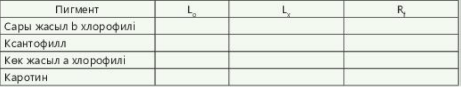 Қорытынды: қағаз хромотографиясын пайдалана отырып, əр пигменттердің қашық-тыктарын өлшеп, онын R, мәнін өлшейміз.