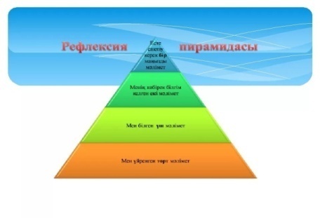 Рефлексия жасайды. Бүгінгі сабақта не үйренгендерін, топта қалай жұмыс жасағандарын, қандай білім алғандарын таразылайды.