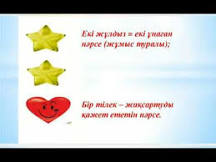 Тілдік бағдар Сілтеу есімдігі Алыстағы не жақындағы нәрселерді сілтеп, нұсқап көрсету үшін қолданылатын сөздерді сілтеу есімдігі дейді. Сілтеу есімдігіне бұл, осы (осынау), ол, сол (сонау), мына (мынау), ана (анау), әне, міне деген сөздер жатады. Сілтеу есімдіктері заттық ұғымға айналып айтылса, зат есімнің үлгісімен көптеледі (бұлар, осылар, олар), тәуелденеді (бұным, соным, бұныңыз, соныңыз), септеледі (бұған, соған). Сұрау есімдігі Бір нәрсенің атын не оның түрі мен түсін, саны мен сапасын білу үшін қойылатын сұрақтар сұрау есімдігідеп аталады. Сұрау есімдіктері: кім? не? қай? қайсы? қандай? қанша? неше? нешеу? нешінші? қайда? қайдан? қалай?Сұрау есімдігінің бірқатары көп-теліп, тәуелденіп, септеліп және жіктеліп, тұлғалық жағынан құбылып отырады. 5-тапсырма. Жіктеу есімдігінің септелу үлгісін есіңе түсір. Сөйлемдерді көшіріп жаз. Сілтеу есімдігінің өзгерісін түсіндір. Оны атамай, Қайырбек Баршагүлді қалайды (Ғ. Сланов). Соны іздеймін деп, түстен былайғы жұмысым қалды (Ғ. Мүсірепов). Қазіргі шақта Базаралы келгелі бір жұмадай болса да, оны қала ішінде қарсы алған көңілдес ағайын күндіз-түн қонақ етеді (М. Әуезов). Бұны жақтыртпаған сыңай танытып Ақан далаға беттеді (Ғ. Мүсірепов). Рефлексия Алшы - Сабақтан өзіңе пайдалы не алдың? Тәйке – Сабақта не қиын болды? Бүк – Сабақта нені басқаша өзгертуге болады деп ойлайсың? Шік – Бүгінгі сабақтан үйренгенің бойынша алда не істеймін деп ойлайсың? |