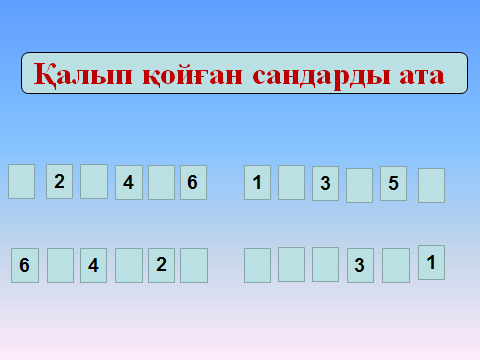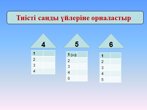 Сабақтың мақсаты: 1. 6санының құрамымен таныстыру. Сандарды ретімен санап үйренуге дағдыландыру.