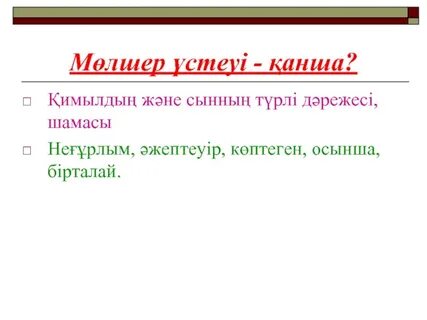 Мөлшер үстеуін тауып, сұрақ қояды.