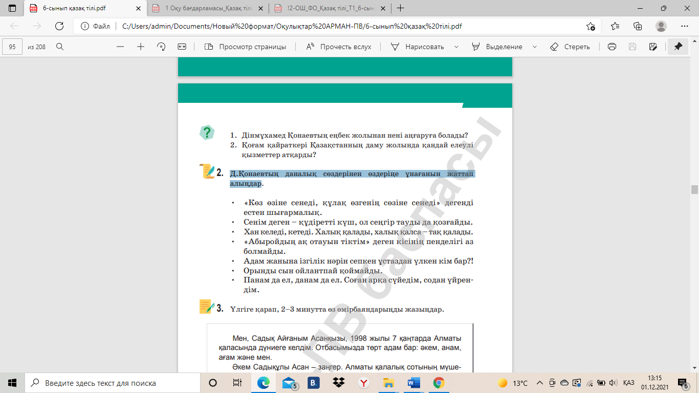 ҚБ ЖАЗЫЛЫМНАН КЕЙІН. 2-тапсырма.Д.Қонаевтың даналық сөздерінен өздеріңе ұнағанын жаттап алыңдар.Тақырып бойынша ойларыңды қорытындылаңдар.