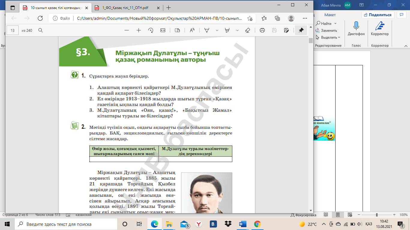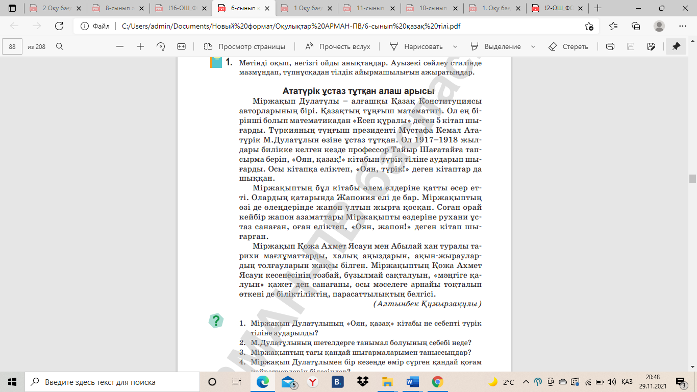6-сынып. 2-тоқсан Міржақып Дулатұлы